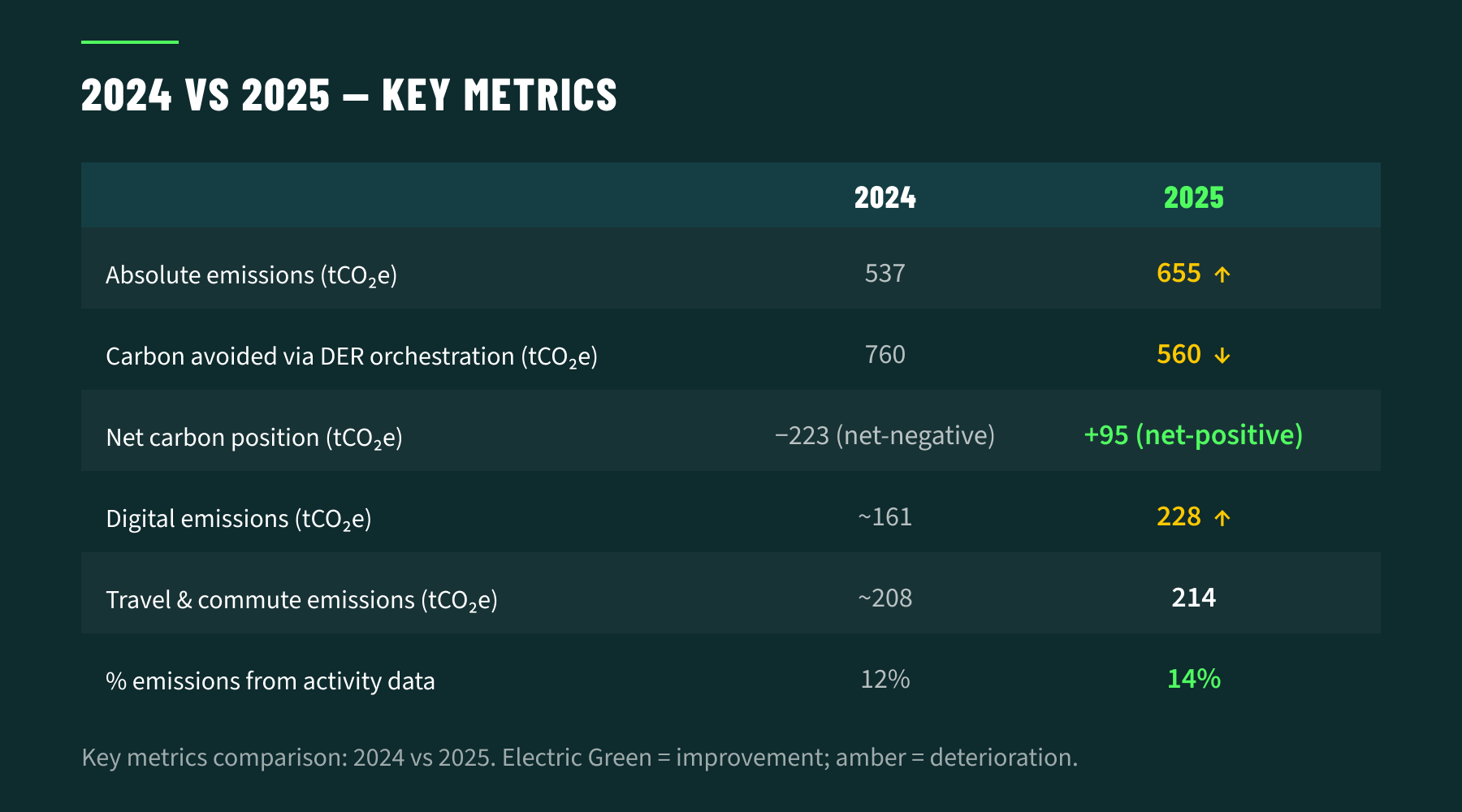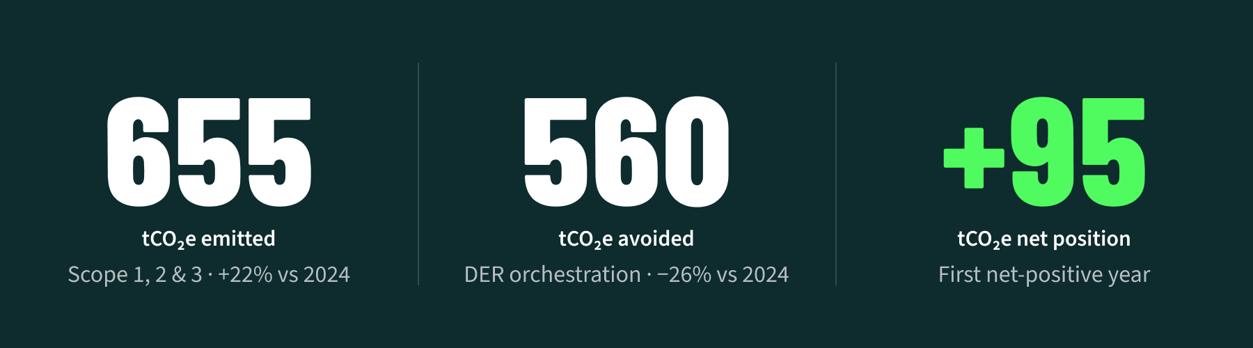 Net-negative is our baseline, not a bonus. We built this company to avoid carbon, not just measure it. DER orchestration, done right, means cheaper rates for everyone and a cleaner grid. We will return to a net-negative status, and we will be transparent about our progress every step of the way.